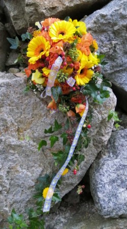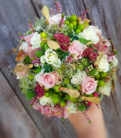Wir fertigen aus der Blumenvielfalt eine passende Zusammenstellung für den Brautstrauß, den Anstecker des Bräutigams, den Kirchenschmuck, das Ringkissen, den Tischschmuck, usw.